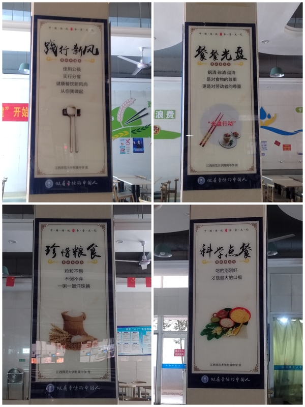 光盘行动,你我同行。为践行“舌尖上的文明”,大发体育 开展“光盘行动”主题活动,活动期间,大发体育 以节俭用餐、安全用餐、文明用餐为行动指南,利用宣传海报、展示架等形式宣传文明餐桌的活动,树立同学们的文明用餐观念,期间,同学们积极参与其中,文明用餐,做厉行节约的践行者、餐桌文明的维护者、美好生活的创造者,努力打造绿色餐饮、文明用餐新风尚,光盘行动正成附中一道亮丽的风景。