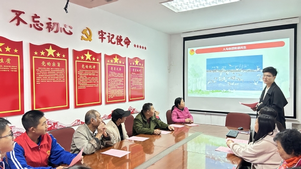 在活动中,刘江虎老师倡导居民生态文明建设需要人人出力,江西独特的地理环境,山清水秀的生态文明是所有人共同努力的结果。志愿者们与社区居民进行了互动交流,解答了居民们提出的问题,并就社区居民如何更好地践行生态文明建设提出了建议。