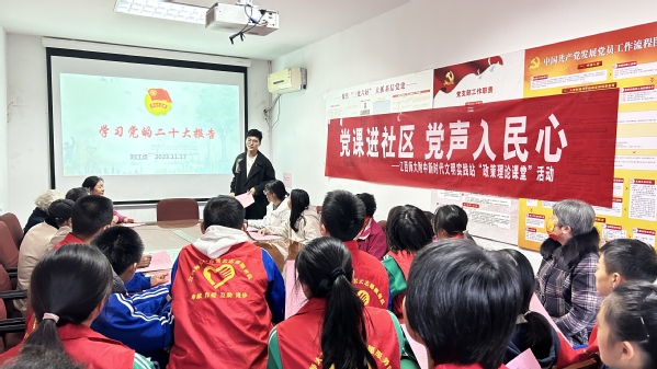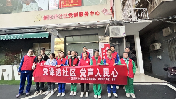 近日,江西师大附中“政策理论课堂”进社区活动在新魏路社区新时代文明实践站举行。此次活动旨在深入学习贯彻习近平新时代中国特色社会主义思想,推动绿色发展,促进人与自然和谐共生。